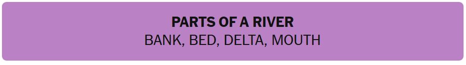- PARTS OF A RIVER – BANK, BED, DELTA, MOUTH