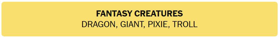 - FANTASY CREATURES – DRAGON, GIANT, PIXIE, TROLL