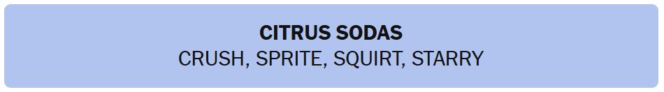 - CITRUS SODAS – CRUSH, SPRITE, SQUIRT, STARRY