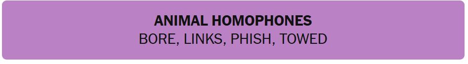 - ANIMAL HOMOPHONES – BORE, LINKS, PHISH, TOWED