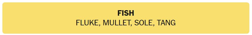 - FISH – FLUKE, MULLET, SOLE, TANG