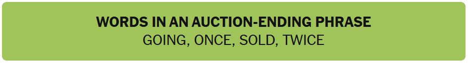 - WORDS IN AN AUCTION-ENDING PHRASE – GOING, ONCE, SOLD, TWICE