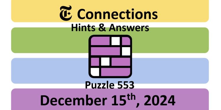Here are the answers for the New York Times (NYT) Connections puzzle #553 today, released on December 15th, 2024, and some hints to help you solve them.
