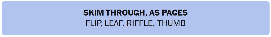- SKIN THROUGH, AS PAGES – FLIP, LEAF, RIFFLE, THUMB
