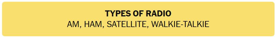 - TYPES OF RADIO – AM, HAM, SATELLITE, WALKIE-TALKIE