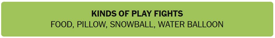 - KINDS OF PLAY FIGHTS – FOOD, PILLOW, SNOWBALL, WATER BALLOON