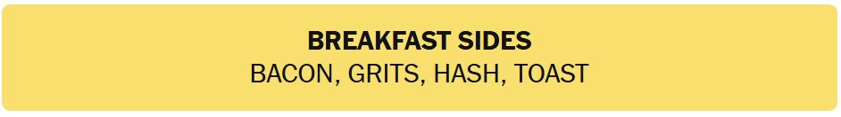 - BREAKFAST SIDES – BACON, GRITS, HASH, TOAST