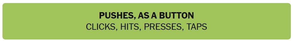 - PUSHES, AS A BUTTON – CLICKS, HITS, PRESSES, TAPS