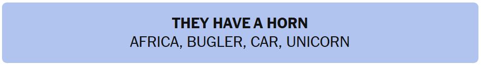 - Hint 4: One group of words is “THEY HAVE A HORN“.