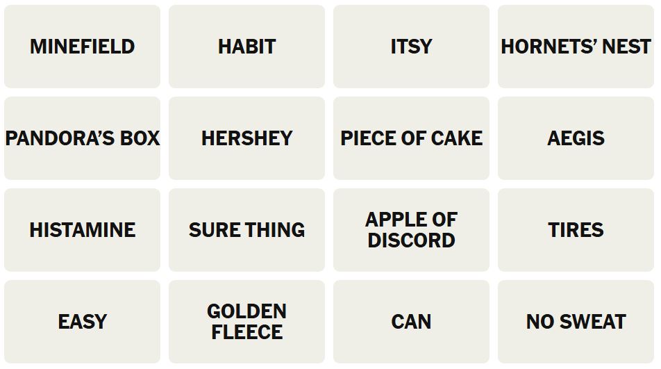 - Hint 3: GOLDEN FLEECE and AEGIS are in the same group.