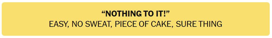 - “NOTHING TO IT!” – EASY, NO SWEAT, PIECE OF CAKE, SURE THING