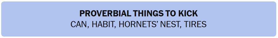 - PROVERBIAL THINGS TO KICK – CAN, HABIT, HORNETS’ NEST, TIRES