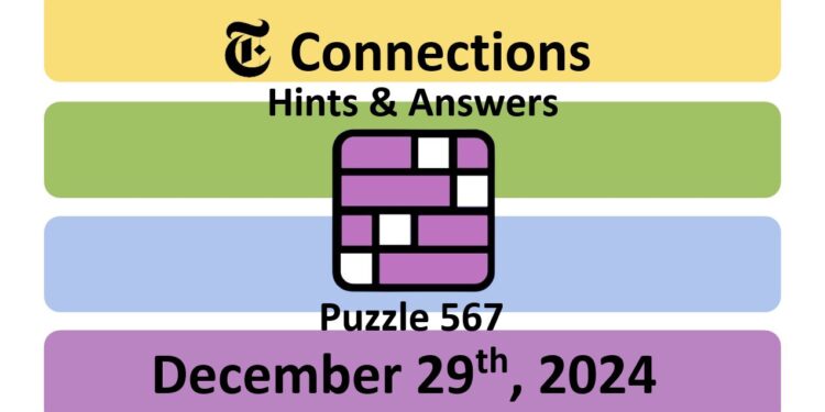 Here are the answers for the New York Times (NYT) Connections puzzle #567 today, released on December 29th, 2024, and some hints to help you solve them.