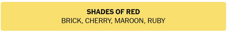 - SHADES OF RED – BRICK, CHERRY, MAROON, RUBY