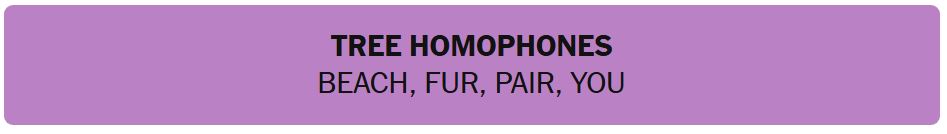 - TREE HOMOPHONES – BEACH, FUR, PAIR, YOU