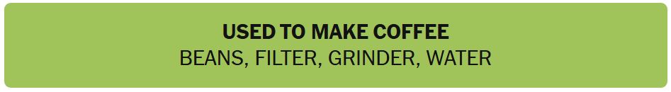 - USED TO MAKE COFFEE – BEANS, FILTER, GRINDER, WATER