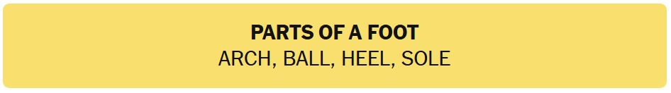 - PARTS OF A FOOT – ARCH, BALL, HEEL, SOLE