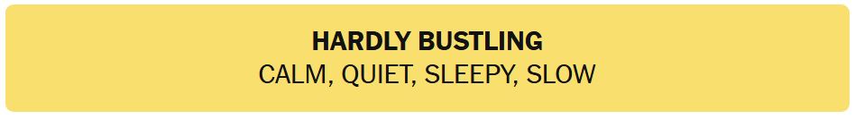 - HARDLY BUSTLING – CALM, QUIET, SLEEPY, SLOW