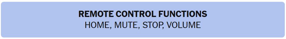 - REMOTE CONTROL FUNCTIONS – HOME, MUTE, STOP, VOLUME