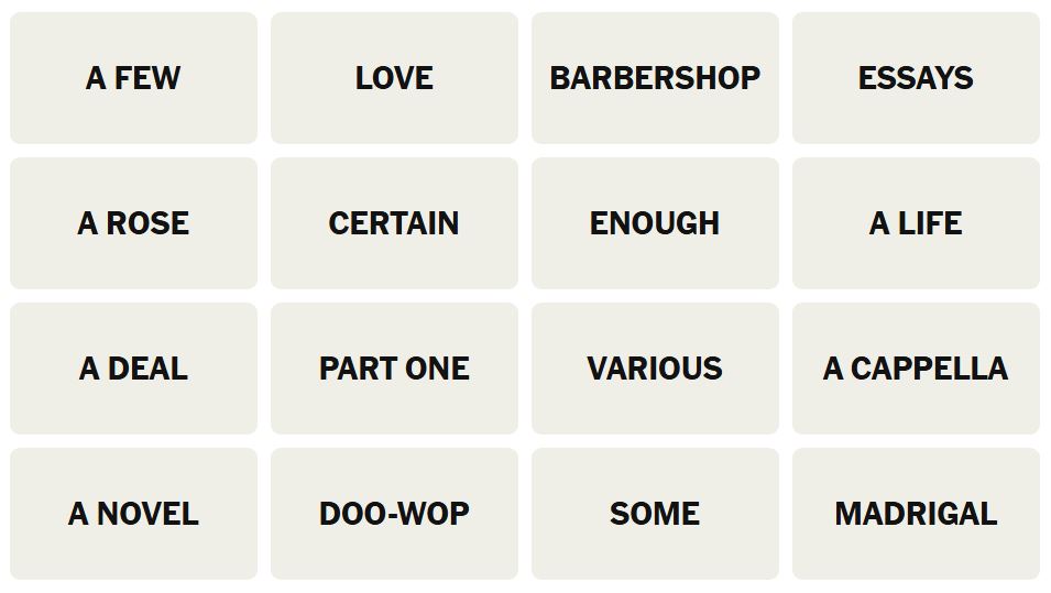 The rules of the game are simple for Connections. There are sixteen words for players to sort into four groups of four words that share something in common.