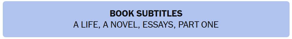 - BOOK SUBTITLES – A LIFE, A NOVEL, ESSAYS, PART ONE