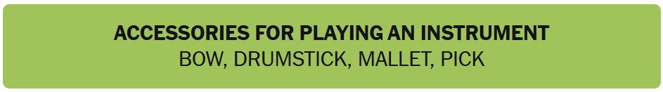 - ACCESSORIES FOR PLAYING AN INSTRUMENT – BOW, DRUMSTICKS, MALLET, PICK