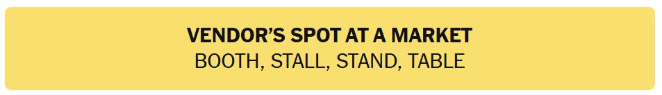 - VENDOR’S SPOT AT A MARKET – BOOTH, STALL, STAND, TABLE