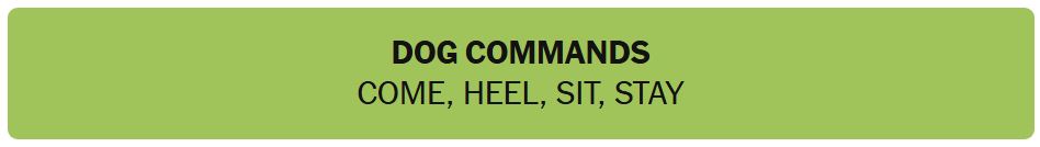- DOG COMMANDS – COME, HEEL, SIT, STAY