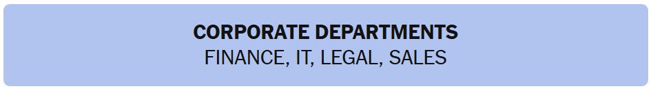 - CORPORATE DEPARTMENTS – FINANCE, IT, LEGAL, SALES