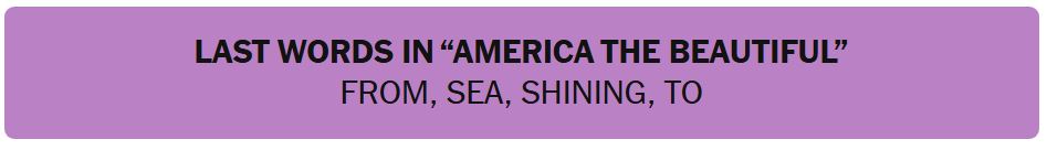 - LAST WORDS IN “AMERICA THE BEAUTIFUL” – FROM, SEA, SHINING, TO