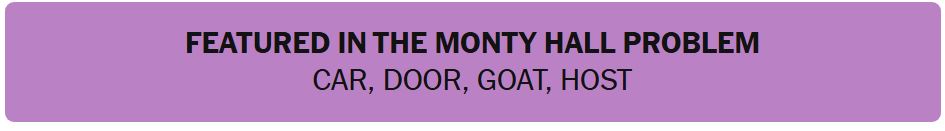- FEATURED IN THE MONTY HALL PROBLEM – CAR, DOOR, GOAT, HOST