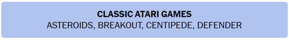 - CLASSIC ATARI GAMES – ASTEROIDS, BREAKOUT, CENTIPEDE, DEFENDER