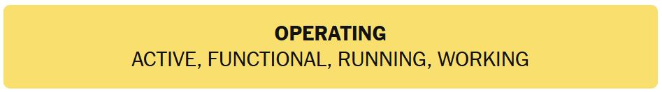 • OPERATING – ACTIVE, FUNCTIONAL, RUNNING, WORKING