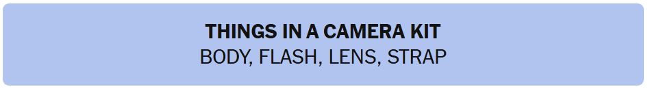 • THINGS IN A CAMERA KIT – BODY, FLASH, LENS, STRAP