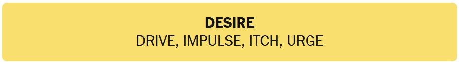 - DESIRE – DRIVE, IMPULSE, ITCH, URGE