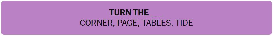 - Hint 4: One group of words comes after the words “TURN THE“.