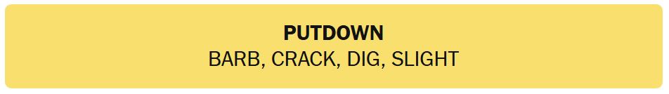 - PUTDOWN – BARB, CRACK, DIG, SLIGHT
