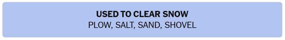 - USED TO CLEAR SNOW – PLOW, SALT, SAND, SHOVEL