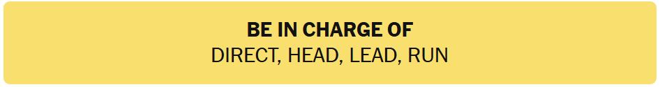 • BE IN CHARGE OF – DIRECT, HEAD, LEAD, RUN