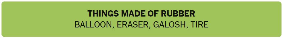 • THINGS MADE OF RUBBER – BALLOON, ERASER, GALOSH, TIRE