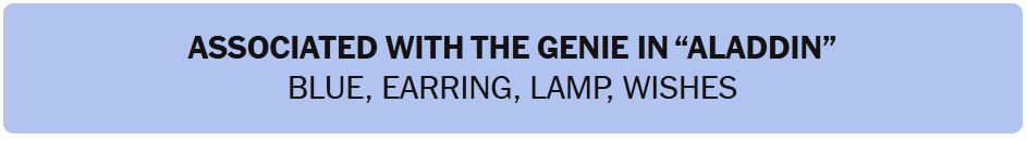 • ASSOCIATED WITH THE GENIE IN “ALADDIN” – BLUE, EARRING, LAMP, WISHES