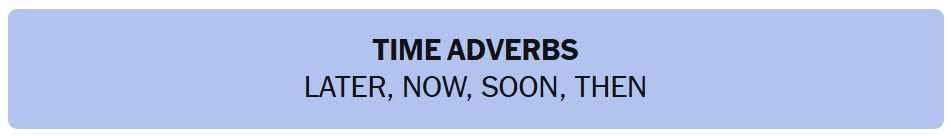 • TIME ADVERBS – LATER, NOW, SOON, THEN