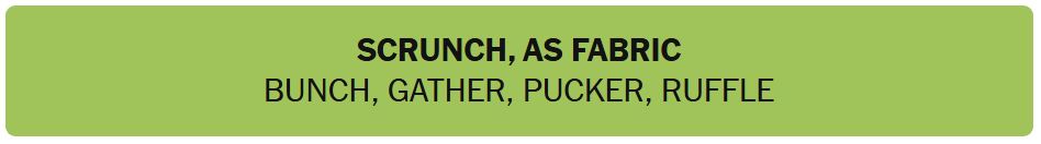 • SCRUNCH, AS FABRIC – BUNCH, GATHER, PUCKER, RUFFLE