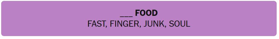 • ___ FOOD – FAST, FINGER, JUNK, SOUL