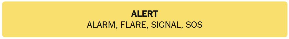 - ALERT – ALARM, FLARE, SIGNAL, SOS