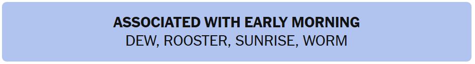 - ASSOCIATED WITH EARLY MORNING – DEW, ROOSTER, SUNRISE, WORM