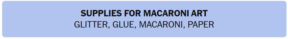 • SUPPLIES FOR MACARONI ART – GLITTER, GLUE, MACARONI, PAPER