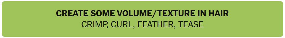 • CREATE SOME VOLUME/TEXTURE IN HAIR – CRIMP, CURL, FEATHER, TEASE
