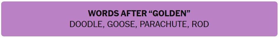 • WORDS AFTER “GOLDEN” – DOODLE, GOOSE, PARACHUTE, ROD