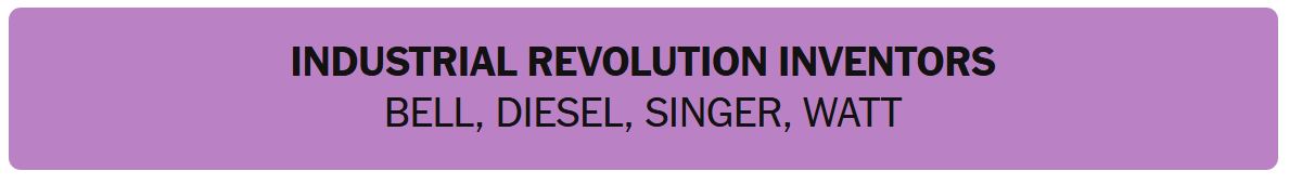 - INDUSTRIAL REVOLUTION INVENTORS – BELL, DIESEL, SINGER, WATT